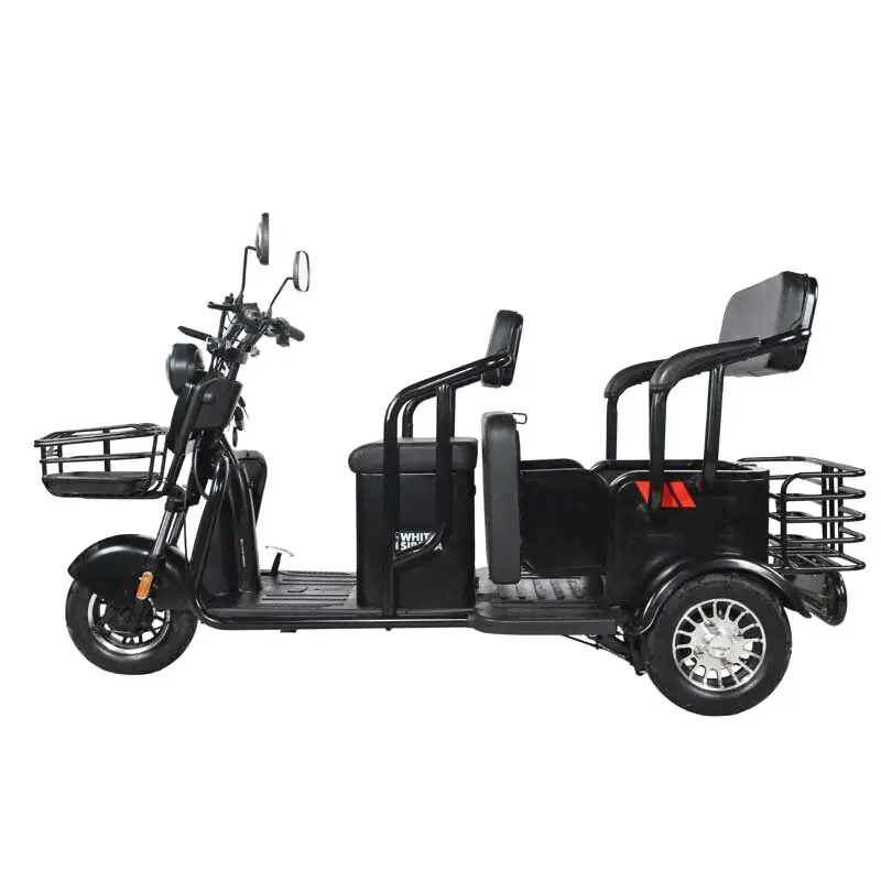 White Siberia Sibtrike R 2000W - крупный электроскутер с двумя рядами сидений, который способен перевозить до четырёх человек. Его задние сидения одним лёгким движением становятся небольшим кузовом, в котором можно перевозить дополнительный груз. Также для поклажи установлены сетки - спереди и сзади, поэтому данная модель может быть очень полезна в хозяйстве. Внешне и функционально этот скутер вдохновлён моторикшами, распространёнными в странах южной Азии. White Siberia Sibtrike R 2000W проезжает до 60 км на одном заряде, но возможна установка второго аккумулятора, увеличивающая это расстояние до 120 км. Максимальная скорость устройства - 35 км/ч. Мотор, мощностью 2000 ватт отлично справляется с нагрузкой, он способен тянуть скутер, нагруженный до 200 кг. Таким образом, White Siberia Sibtrike R 2000W может стать отличным помощником в хозяйстве и безопасным средством для передвижения на короткие и средние расстояния.